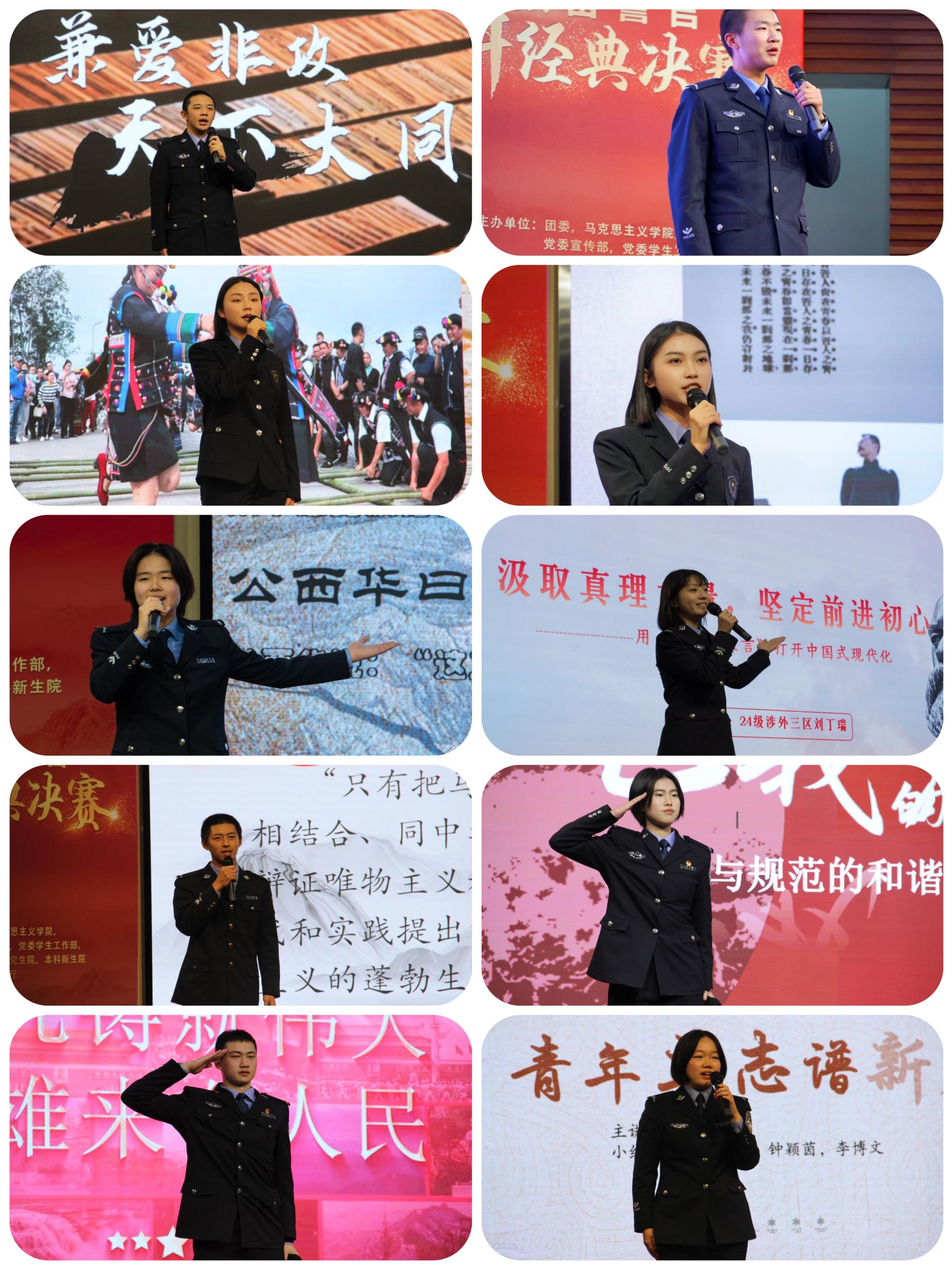 经过激烈角逐,来自本科新生院数据警务技术专业的刘辜克焱团队和犯罪学专业的宋圣宇团队荣获大赛一等奖;来自本科新生院网络安全与执法专业的郑知菲、研究生院法学专业的饶思文、李默团队荣获二等奖;来自本科新生院涉外警务专业的刘丁瑞、胡耀宇,公安管理学专业的李籁果、王晨语、杨浩然团队荣获三等奖。赛后,马克思主义学院尚景建副教授作了点评,对同学们的精彩表现给予了充分肯定,鼓励同学们真正品读经典,充分挖掘蕴含其中的价值和内涵。