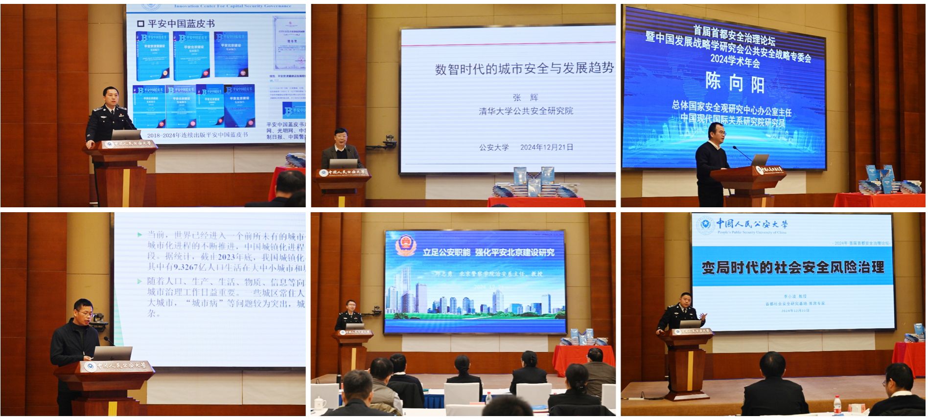 首届首都安全治理论坛主题是“以高水平安全保障首都高质量发展”。清华大学公共安全研究院副院长、“长江学者”特聘教授张辉,总体国家安全观研究中心办公室主任、中国现代国际关系研究院研究员陈向阳,北京市社会科学院综合治理研究所所长袁振龙,北京警察学院治安系主任、教授邱志勇,beat365治安学院教授、首都社会安全研究基地首席专家李小波分别从全球城市安全数智治理、总体国家安全观、首都社会治理、平安北京建设、社会安全风险治理作了精彩报告。
