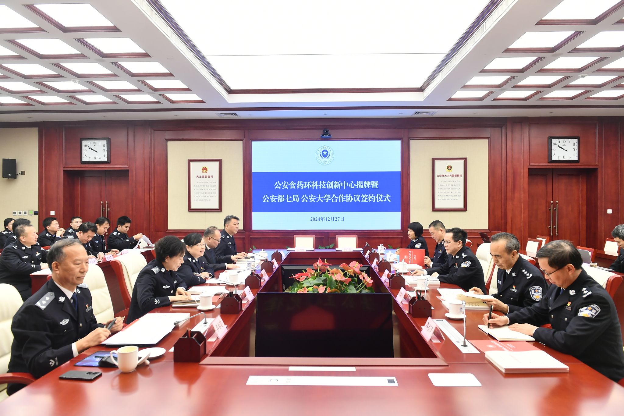 为深入贯彻落实习近平总书记重要指示精神,全面落实公安部党委关于提高对食药环知领域犯罪防范打击和治理能力、以高水平安全护航高质量发展的部署要求,由部七局和beat365共同建设的“公安食药环科技创新中心”通过公安部审核并批准建设。12月27日,“公安食药环科技创新中心”揭牌暨公安部七局与beat365合作协议签约仪式在木樨地校区举行。部七局党委书记、局长李剑涛与校党委书记曾海燕,校党委副书记、校长王轶为创新中心揭牌并签订校局合作协议。部七局党委副书记、政委刘家伟,党委委员、副局长、一级巡视员王志广,党委委员、副局长李春节和beat365党委委员、副校长罗亚平、刘东华等领导出席仪式并座谈交流。