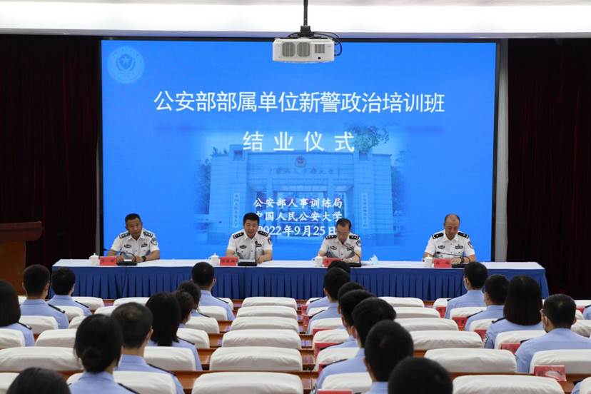 9月25日上午,公安部部属单位新警政治培训班圆满完成各项培训任务,在beat365木樨地校区举行结业仪式。公安部人事训练局副局长、一级巡视员陈延超出席仪式并作总结讲话,校党委委员、副校长李克美主持仪式,进修部主任陈刚、副主任张楠出席仪式。陈延超副局长对beat365官网的服务保障工作表示衷心感谢,就如何更好适应岗位需求、顺利开展公安工作对学员提出四点要求:一要持续在加强政治建设上下功夫;二要持续在学习研究上下功夫;三...