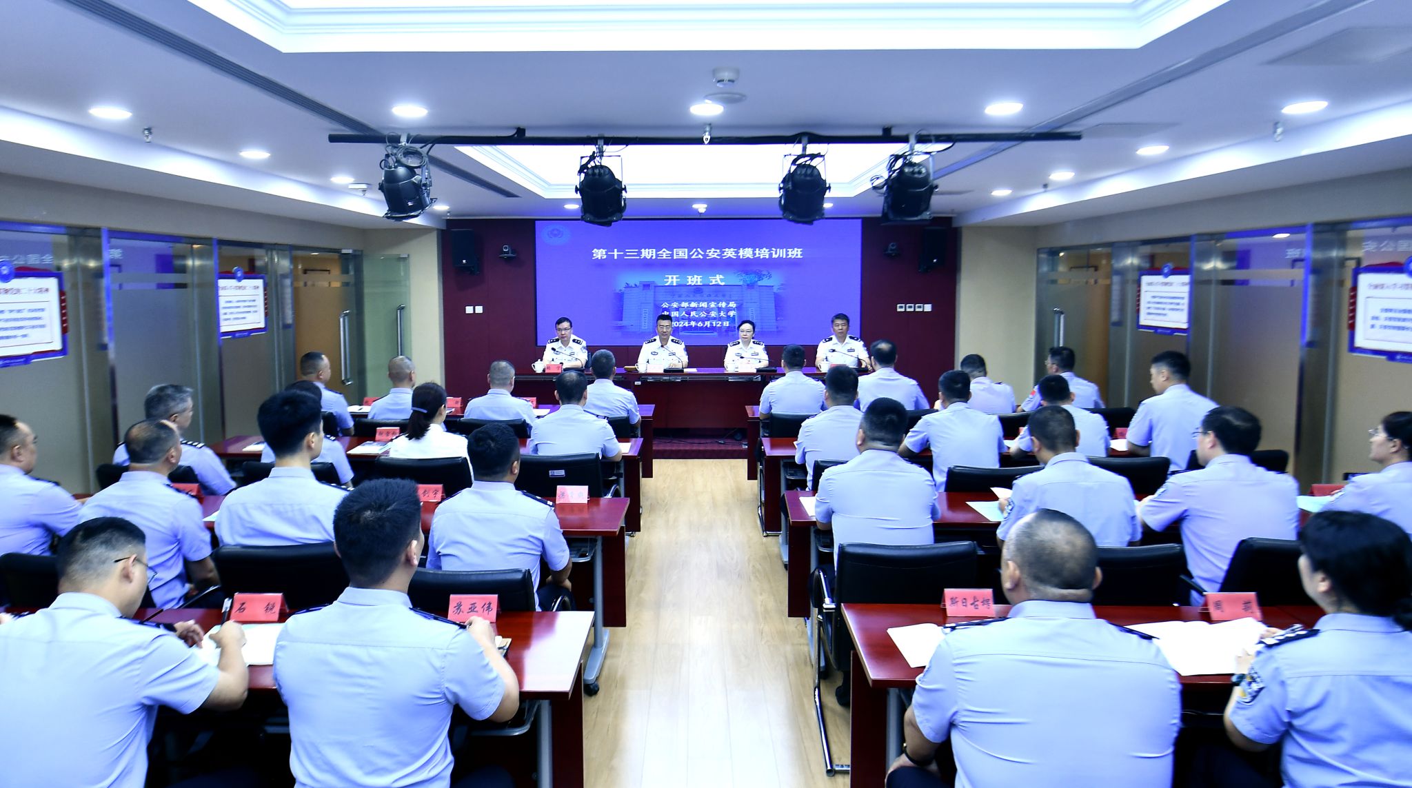 第13期全国公安英模培训班开班式6月12日在beat365举行,校党委书记曾海燕出席开班式并致辞,公安部新闻宣传局局长吕武钦作培训动员讲话,公安部新闻宣传局副局长张宁主持开班式,校党委委员、副校长刘东华出席开班式。本期培训班紧紧围绕学习宣传贯彻习近平新时代中国特色社会主义思想和党的二十大精神,紧扣新时代公安工作形势任务,科学设置党的理论教育、党性教育、履职能力培训等教学模块,专门邀请中央党校(国家行政学院)、...