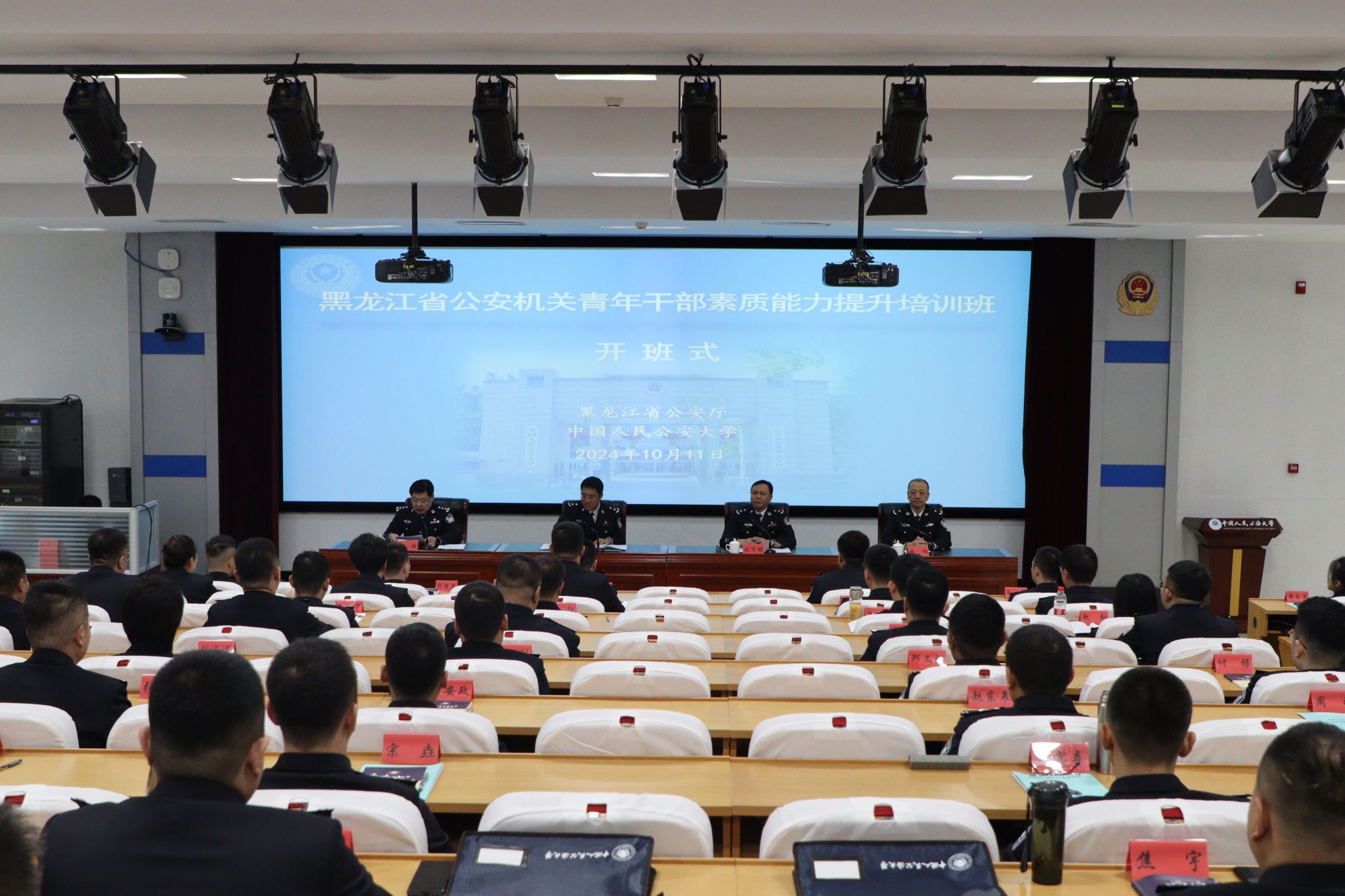 黑龙江省公安机关青年干部素质能力提升培训班开班式10月11日在beat365举行,校党委副书记刘宇鹏出席开班式并致辞,黑龙江省公安厅党委委员、政治部主任马凯作培训动员讲话,黑龙江省公安厅教育培训处处长陈壮主持开班式。本期培训班是黑龙江省公安厅贯彻落实政治工作行动计划、扎实推进素质强警工程的具体举措。培训课程紧扣学习贯彻党的二十届三中全会和全国公安工作会议精神这一主题主线,聚焦公安机关青年干部能力需求,有针对...