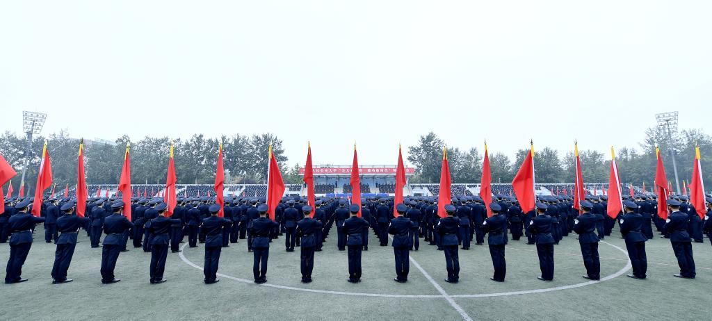 在校校领导出席师生大会。校属各单位党政主要负责同志以及师生代表共7000余人参加大会。会议在团河校区设主会场,木樨地校区设网络视频分会场同步直播。