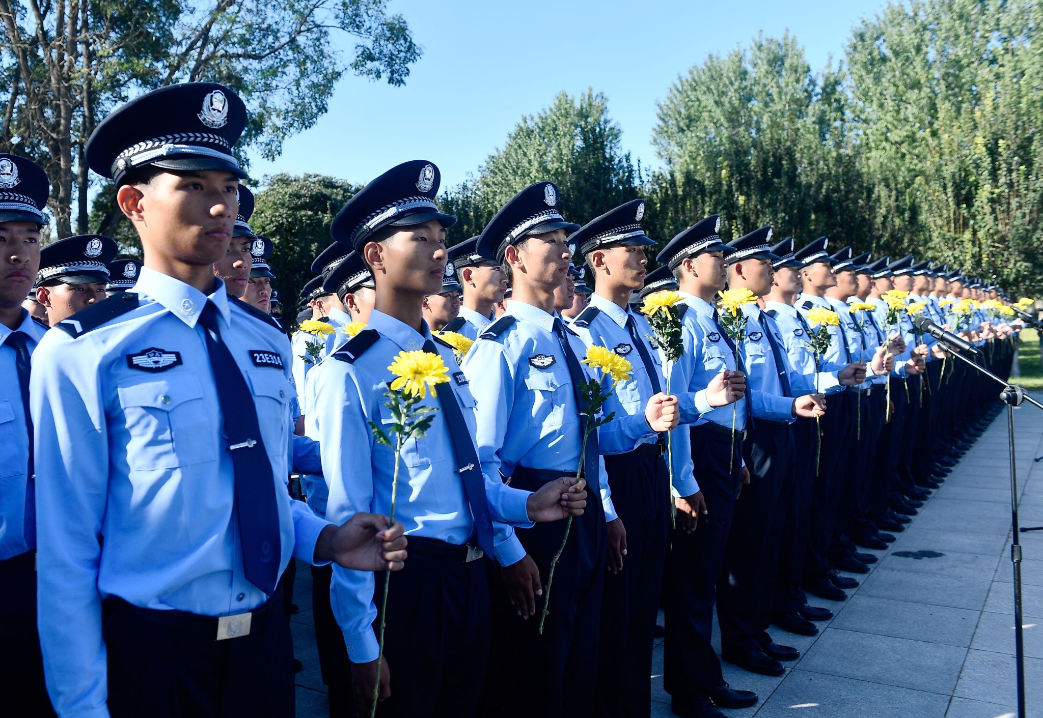 活动中,学生代表宣读了《致全国公安院校学生倡议书》。呼吁全国公安院校预备警官,时刻牢记习近平总书记的重要嘱托,大力继承和弘扬公安英烈精神,矢志不渝做党和人民的忠诚卫士,为建设更高水平的平安中国贡献青春力量。集体宣誓后,全体人员合唱人民警察警歌,并向公安英烈献花致敬,表达对烈士的缅怀和敬意。