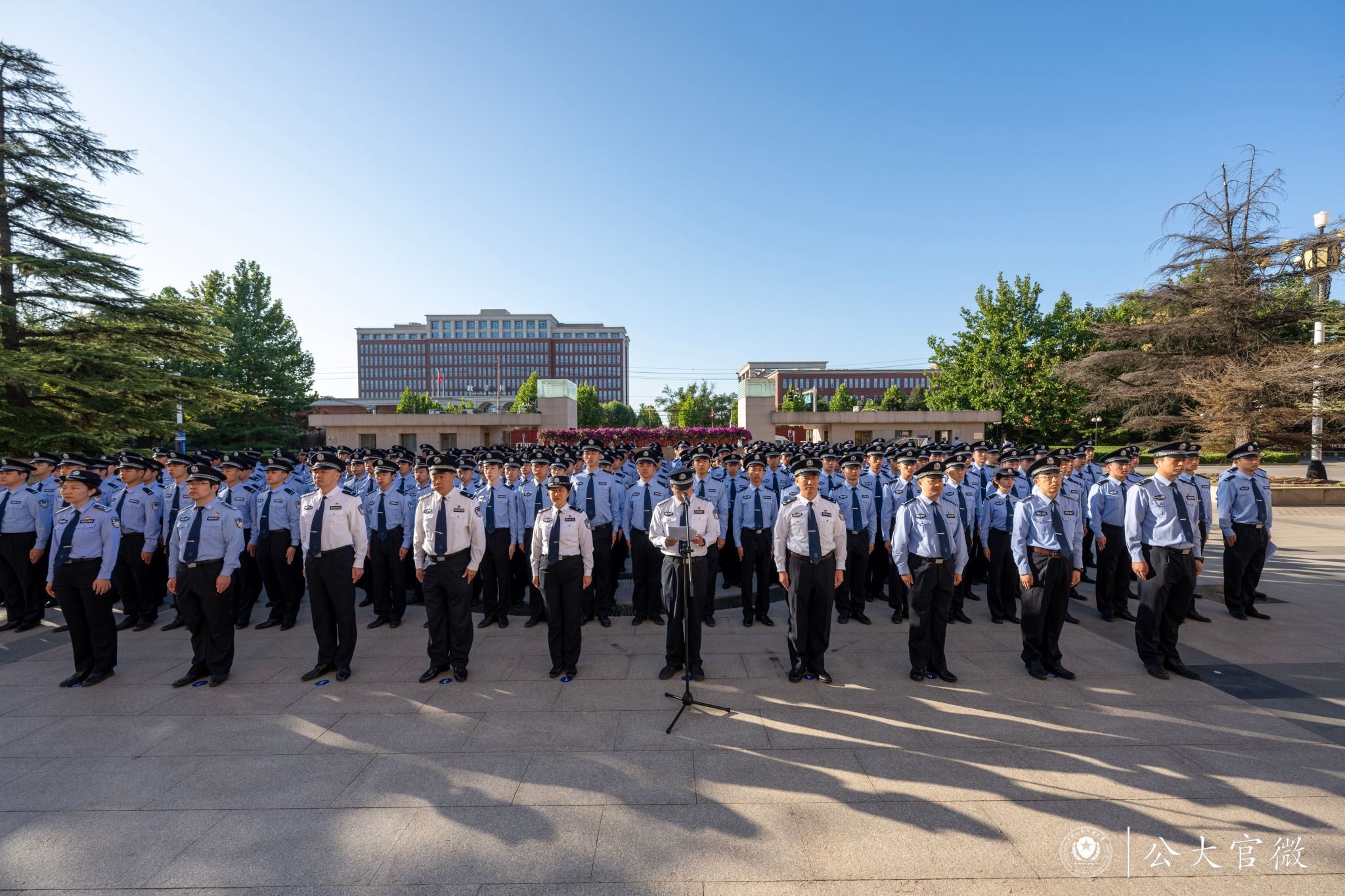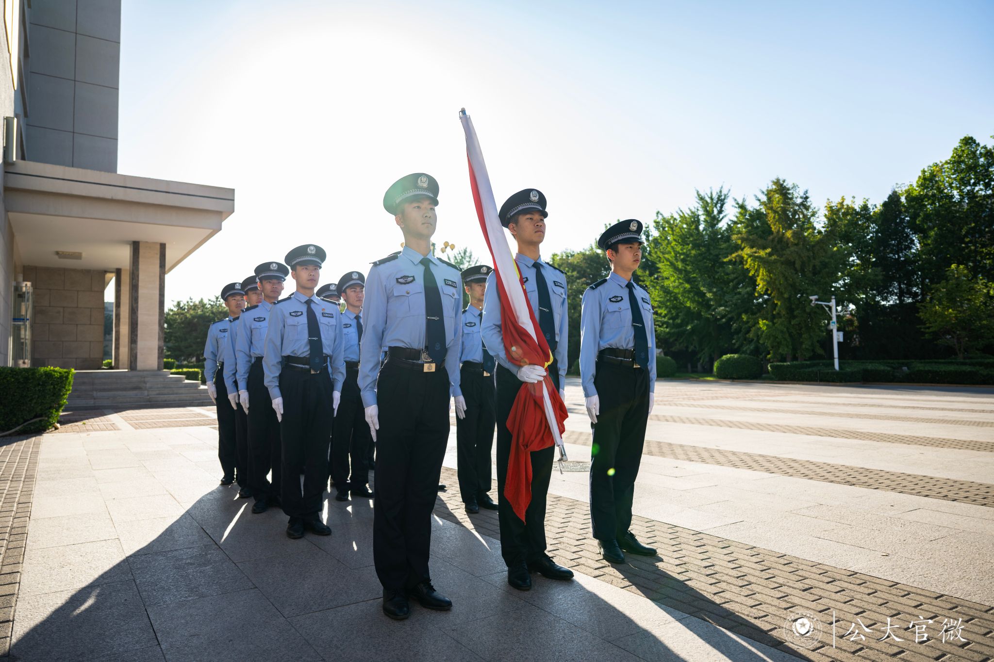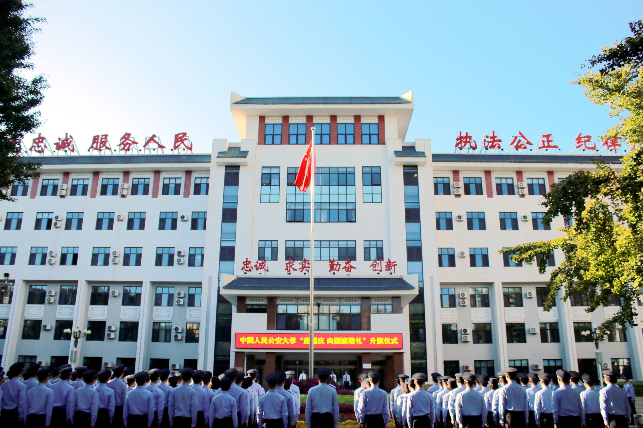 为隆重庆祝中华人民共和国成立74周年,深入学习贯彻习近平总书记对学校在读公安英烈子女的重要回信精神,进一步激发全校师生爱国情怀,提升奋进新时代的凝聚力和向心力,beat365官网于10月1日在木樨地校区主楼北广场以及团河校区育警楼前广场同时举行“迎国庆,向国旗敬礼”升旗仪式。两校区共700余名师生参加升国旗仪式。