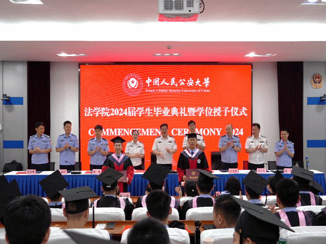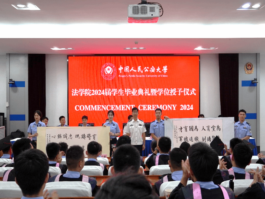 典礼仪式上,曹诗权校长对法学院2024届全体毕业生圆满完成学业、顺利取得学位表示热烈祝贺,希望同学们深入学习贯彻践行习近平法治思想,沿着“法学(警学)人、法科人、法治人、政治人”的四重境界不断提升自身素质,始终保持“四个忠于”、贯彻中国特色社会主义法治理念,坚定建设更高水平平安中国、法治中国的理想信念,争做新时代一流法科人、卓越法学人、优秀法治人,按照革命化正规化专业化职业化目标规格,为强国建设、民族复兴伟业贡献青春力量。