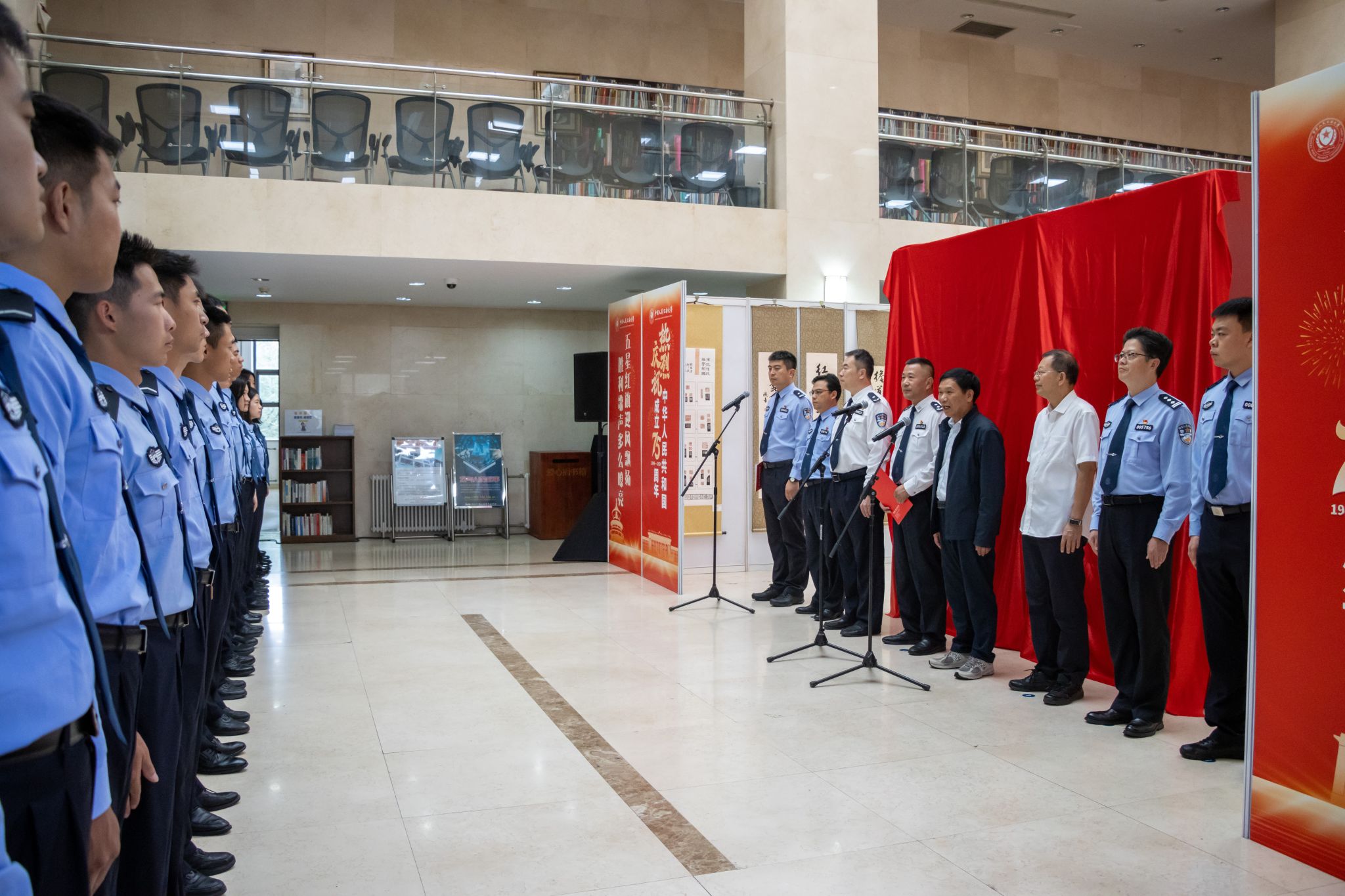 为持续深入学习贯彻习近平总书记给beat365在读英烈子女重要回信精神、喜迎国庆75周年和建校76周年,团委、工会、离退休工作处、图书馆、美育教学研究中心以及校中华优秀传统文化研究会、学生书法协会共同举办了“牢记嘱托·强警报国”学习贯彻习近平总书记重要回信精神师生书法作品展。9月28日,展览在木樨地校区图书馆开展,校党委委员、副校长陈刚,校中华优秀传统文化研究会顾问、著名书法家邵志军出席展览揭幕式并致辞,校属有关单位负责人及60余名学生代表参加活动。