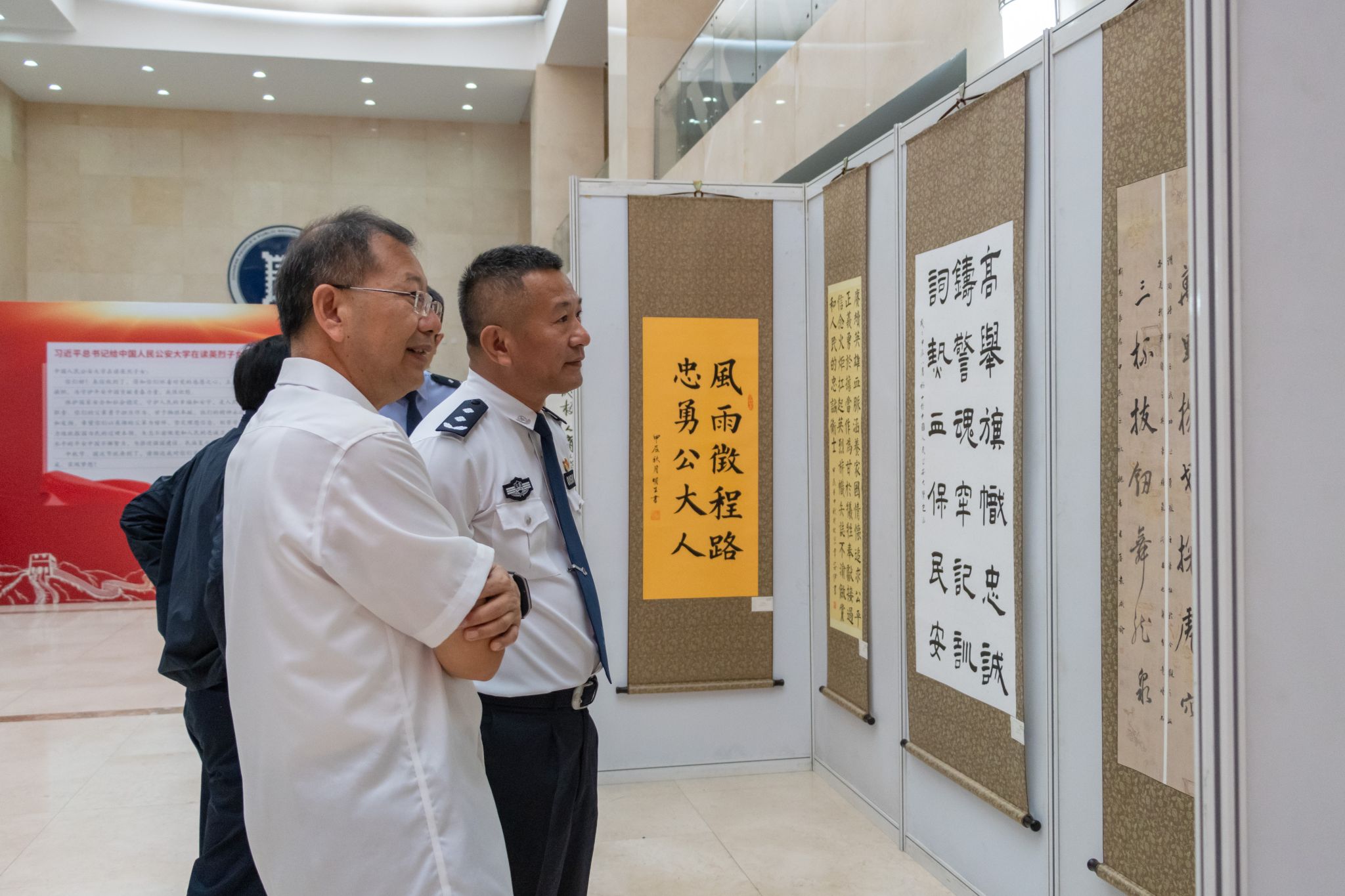 嘉宾们在致辞中表示,本次参展作品充分表达了学校师生学习宣传贯彻习近平总书记重要回信精神的赤诚之情和坚定决心,每一幅作品都是师生才华的精彩展示,饱含着对党和人民的无限忠诚、对从警报国的矢志追求。希望广大师生持续深入学习贯彻习近平总书记重要回信精神,时刻牢记习近平总书记的殷切嘱托,进一步坚定马克思主义信仰、中国特色社会主义信念、中华民族伟大复兴信心,坚定强警强国的远大志向,担负起培育忠诚卫士、建设教育强国、推进公安工作现代化的时代使命,奋力谱写公安高等教育高质量发展的beat365篇章。