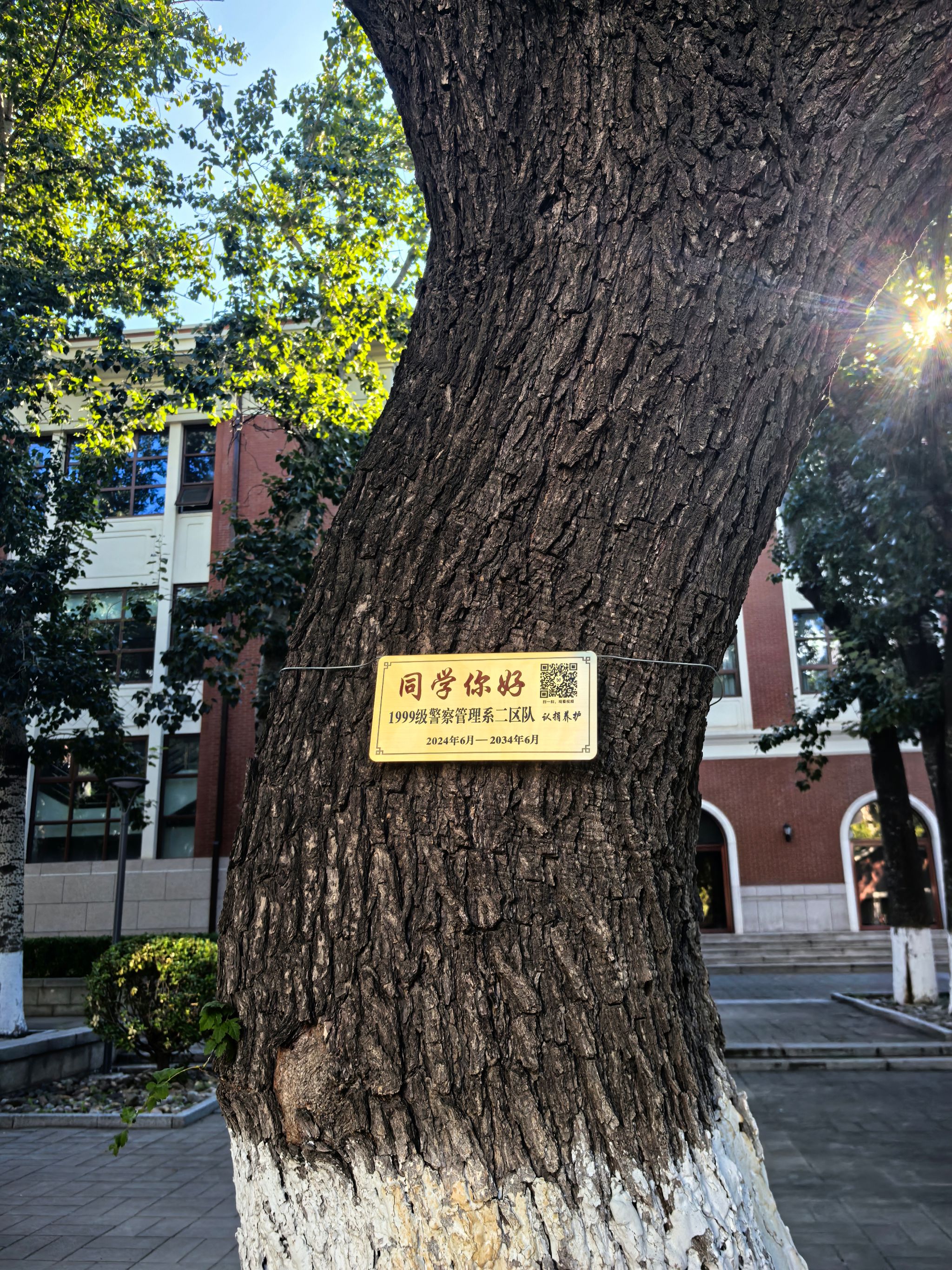 被校友们认捐养护的纪念树主要分布在两校区教学楼、图书馆、礼堂等标志性建筑附近,吸引了大量师生、校友们驻足停留观赏,成为一道亮丽的风景,留下了具有鲜明beat365特色的校园文化地标。校友们还集思广益,为认捐养护的纪念树冠以传承beat365校训、擦亮忠诚底色、激扬奋斗精神的纪念名称。例如,1994届校友、2004届校友、2014届校友毕业返校,将认捐的纪念树命名为“警大树”“樨望树”“团结树”“平安侦途”“同心同行”等,回首藏蓝岁月,重温从警初心,寄予美好祝福;2003届校友、2015届校友将认捐的纪念树命名为“常清树”“尖刀上的刀尖”等,表达牢记忠诚使命、矢志奋斗强警的决心;2003届公安管理专业校友认捐的“同学你好”纪念树,纪念铭牌上刻有二维码,扫描二维码可以播放校友原创的纪念歌曲和视频;2024届新校友将认捐的纪念树命名为“星火树”“有所建树”,与母校定下十年之约,以树之名,立鸿鹄之志、展奋斗之姿。