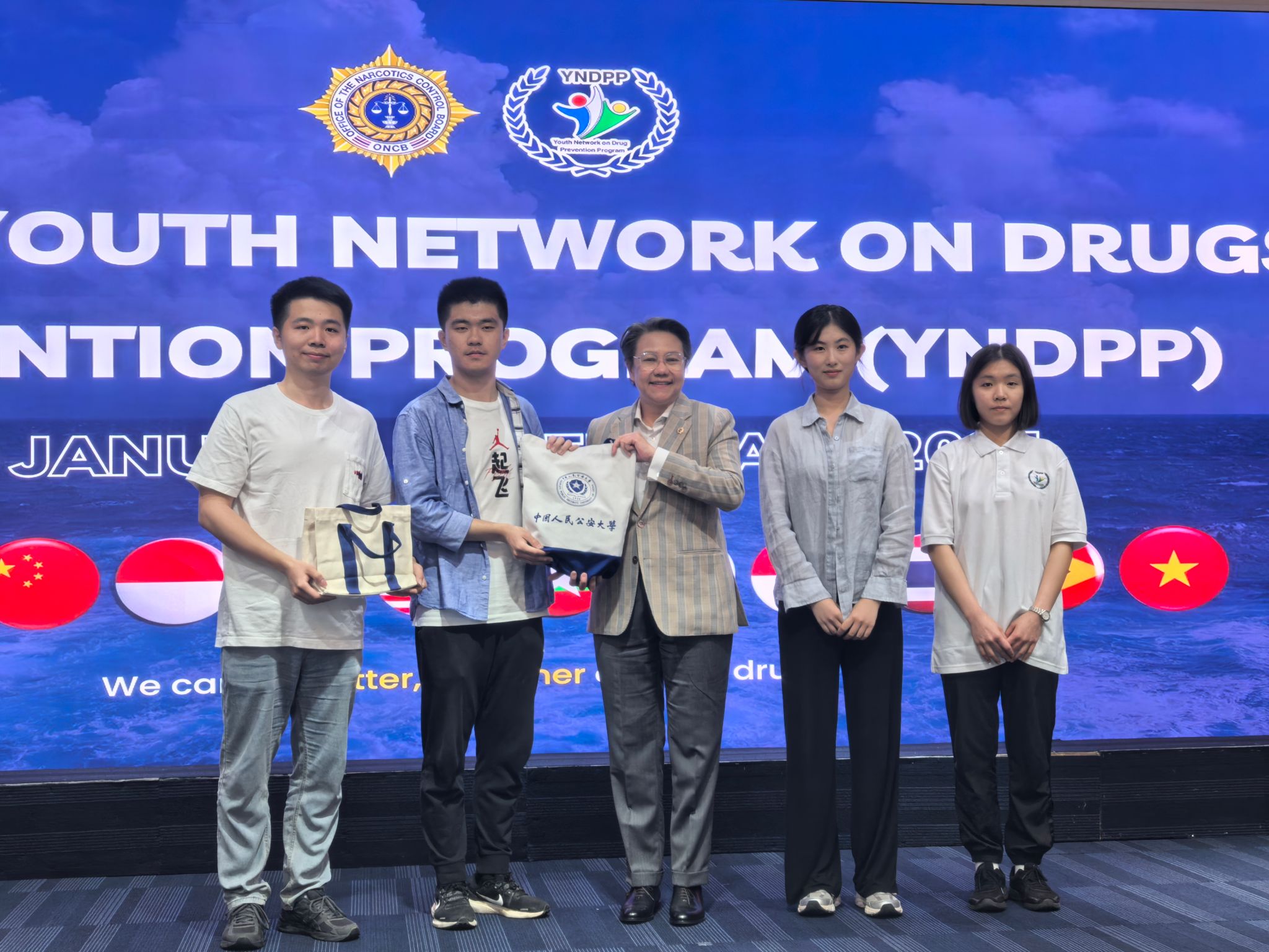 1月30日至2月8日,应泰国肃毒委员会邀请,经国家禁毒办推荐,beat365选派由侦查学院禁毒教研室主任张黎副教授带队的师生代表团一行5人前往泰国、柬埔寨参加第四届青年毒品预防项目(YNDPP)交流活动。该项活动由泰国发起,定期邀请高校青年学生代表通过开展实践考察、学术研讨、文化交流等活动共同学习禁毒知识、交流禁毒经验、探讨毒品治理方案,受邀国家范围由湄公河流域逐渐扩展至“中国+东盟+东帝汶”次区域。本届活动共有来自中国、泰国、柬埔寨、老挝、缅甸、马来西亚、菲律宾、印度尼西亚、文莱等9个国家的45名代表参加。
