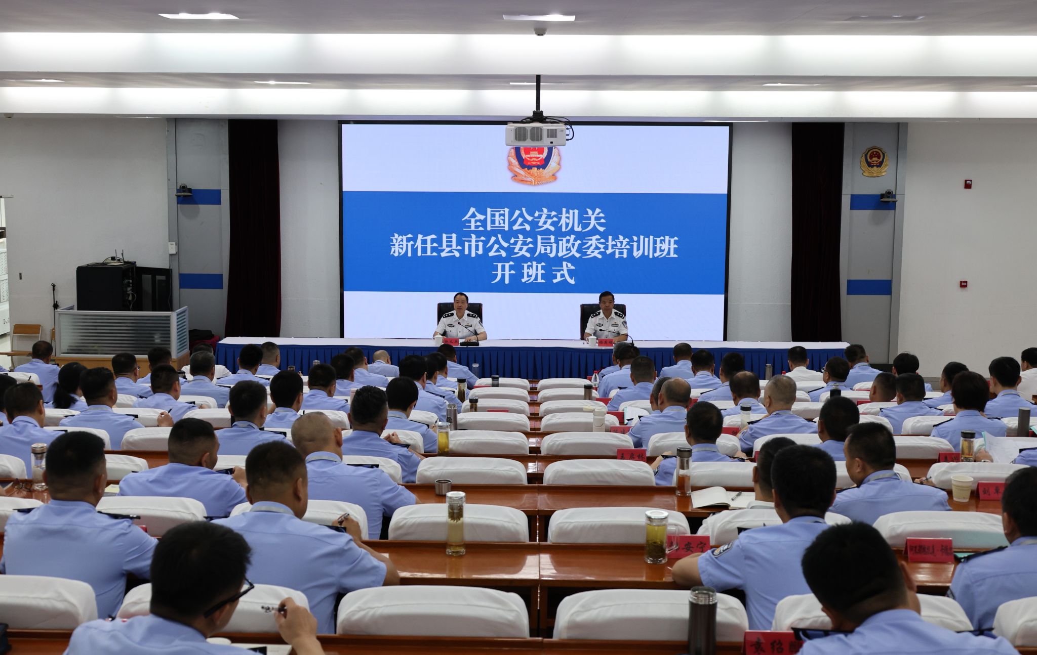 9月16日,全国公安机关新任县市公安局政委培训班在beat365开班,公安部人事训练局副局长赵义兵作开班动员讲话,公安部高级警官学院党委委员、副院长杨英明主持开班式,来自全国公安机关的140名新任县市公安局政委在校参训。