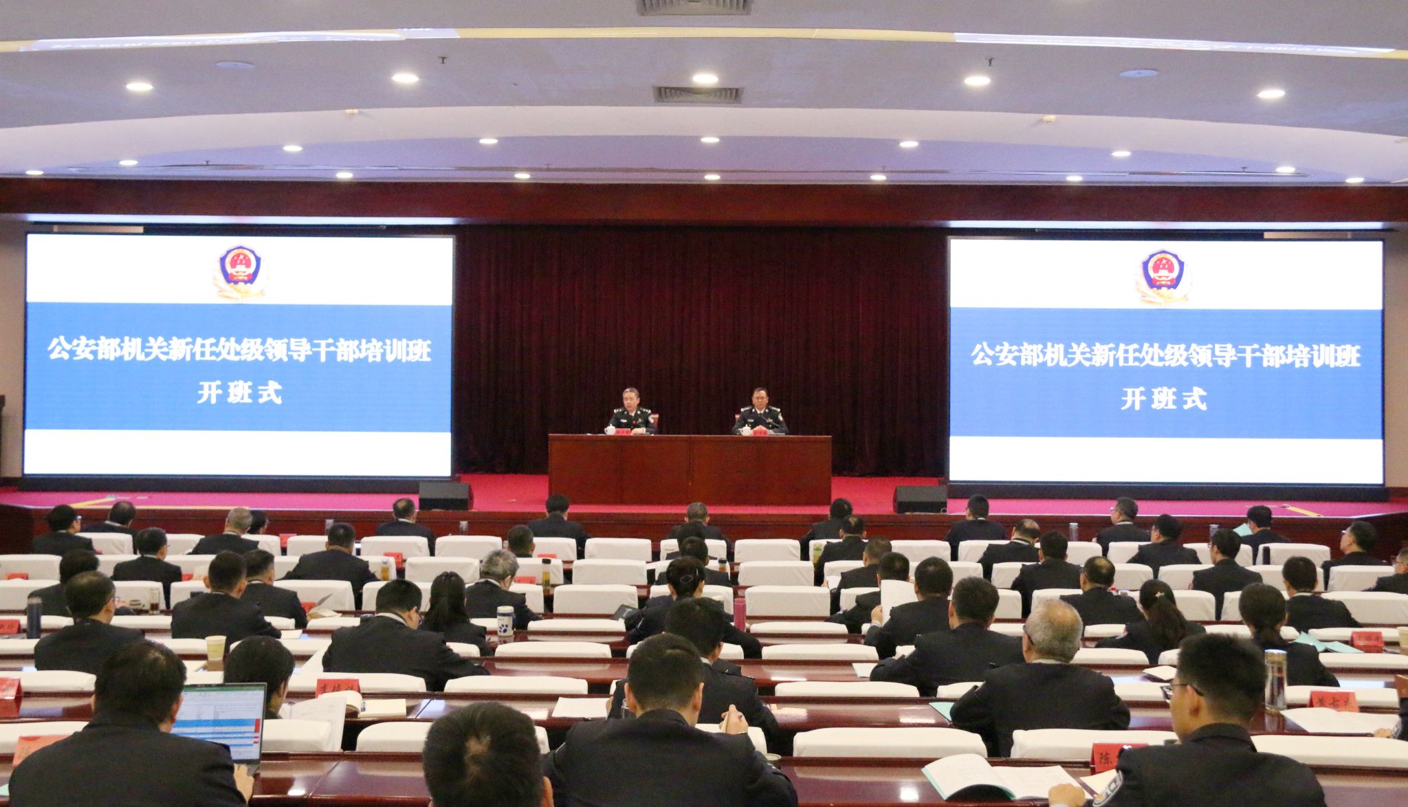 11月11日,公安部机关新任处级领导干部培训班在beat365开班,公安部人事训练局副局长赵莫辉作开班动员讲话,校党委副书记、公安部高级警官学院院长刘宇鹏主持开班式。