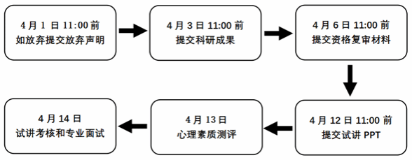 4月3日上午11:00前,按照要求提交本人博士研究生以来的科研成果情况(见附件4,填写《考生科研成果情况登记表》并附对应科研成果支撑材料扫描件,统一发至邮箱:renshichu@ppsuc.edu.cn,邮件主题以“考生姓名+科研成果”格式命名)。因未按时提交相关材料影响科研成果评价得分的,后果由考生本人承担。考生提交的科研成果及相关信息不实或存在违反公认的学术准则、违背学术诚信等情况的,取消专业能力测试资格。