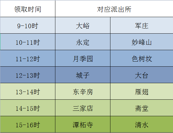 领取地点:门头沟区新桥大街华远·华中心东侧通道(中国工商银行门头沟支行马路对面、分局出入境大厅北侧)。