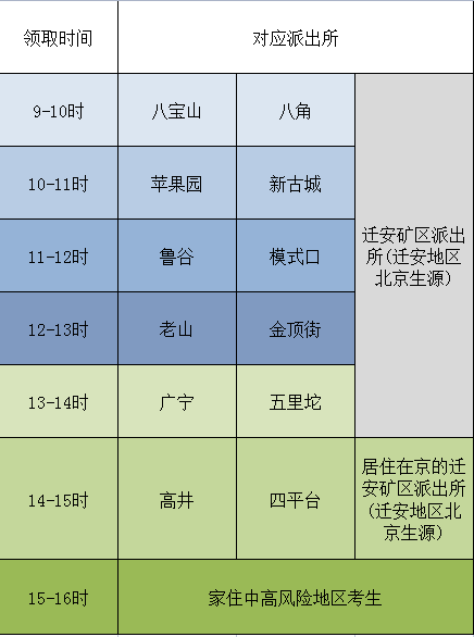 (2)迁安矿区派出所,地址:河北省唐山市迁安市滨河村石景山分局迁安矿区派出所。(限居住在迁安地区北京生源)