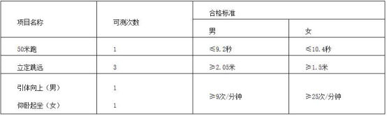 体能测评的项目和标准,按照《国家学生体质健康标准(2014年修订)》的有关规定执行,具体如下:
