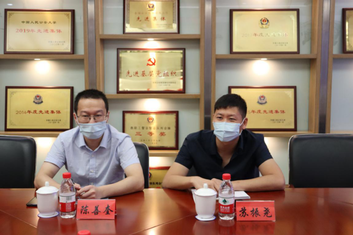 李克美主任代表学校对古田干部学院两位同志到beat365官网调研交流表示欢迎。他表示,古田干部学院是beat365官网党校挂牌培训基地,龙岩市公安局也是校局合作单位,双方有着长期的友好战略合作关系。古田具有丰富的红色教育培训资源,干部教育培训特色鲜明,beat365官网要充分汲取古田干部学院先进做法,促进高警培训的发展。