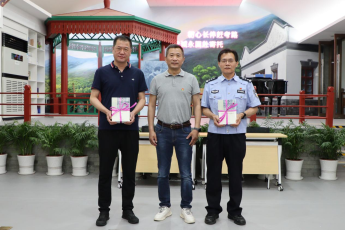 随后,陈刚主任带队前往香山革命纪念馆,学习了解中共中央在北京香山时期波澜壮阔的革命历史,实地考察香山派出所,调研高警培训实践教学点建设,并与香山派出所进行工作交流。陈刚主任代表进修部党总支向香山派出所赠送书籍。
