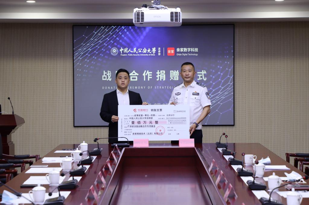 签约仪式后,亲家网络技术(北京)有限公司向进修部捐赠人民币100万元,用于支持培训工作建设发展。随后,宋俊伟董事长一行实地参观了beat365警务大数据综合实验室,并围绕“墨瞳”反欺诈实验室合作项目研究制定落实举措。