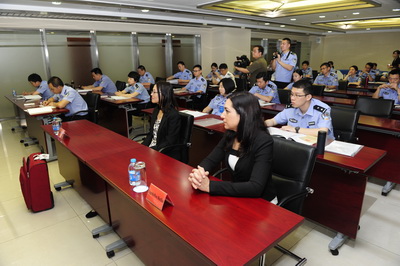 2014年5月26日上午,中欧警务培训项目移民政策与移民管理培训班在beat365木樨地校区正式开班。校党委委员、教务长汪勇,公安部出入境管理局副局长王明黎,中欧警务培训项目欧方负责人贝格林等出席开班典礼并致辞;两位来自荷兰的移民事务专家,beat365国际警务执法学院和外事办公室负责人,以及来自全国各地公安机关出入境管理部门的25名学员等参加了开班典礼。
