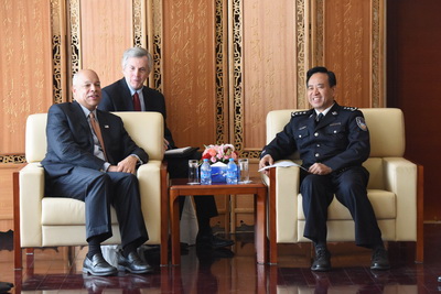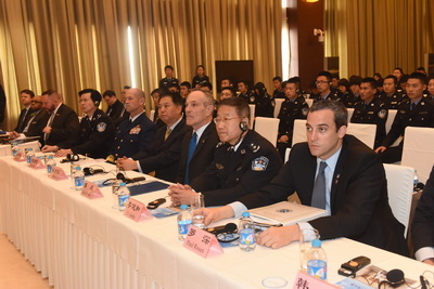 李健和副校长,公安部国际合作局杨少文副局长,驻美国使馆警务参赞韩林
