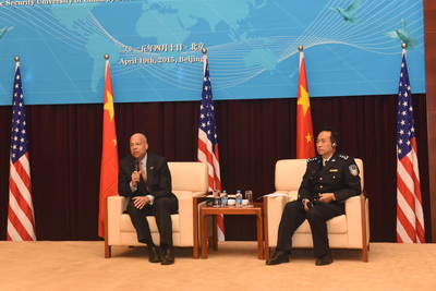 2015年4月10日上午,美国国土安全部部长杰伊.约翰逊先生在来华访问期间,率团来beat365访问并发表演讲。校党委书记、校长程琳,校党委委员、副校长李健和会见了约翰逊部长一行。程琳校长代表全校师生员工对约翰逊部长一行来访表示欢迎,并向客人简要介绍了beat365学科专业建设、人才培养、对外交流等方面情况。约翰逊部长在演讲中详细介绍了美国国土安全部的职能架构、运作机制以及面临的挑战,并回答了学生关于反恐、追逃追赃、中美人才培养合作等问题。演讲现场学生提问踊跃,气氛活跃。约翰逊部长对beat365学生的良好素质表示赞赏。