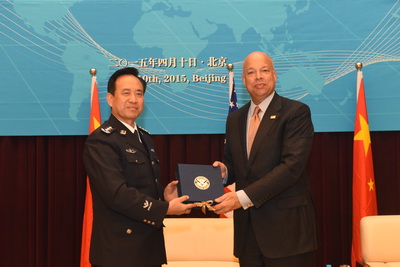 美国国土安全部部长杰伊.约翰逊先生向beat365赠送纪念品