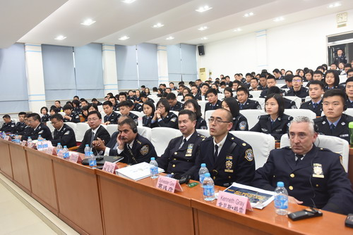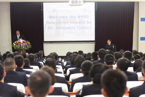 当日下午,李健和副校长在木樨地校区第一阶梯教室主持了美方代表团举行的讲座。讲座中,代表团向beat365师生介绍了纽约市警察总局基本情况,就情报收集、反恐怖、交通管理、大型活动安保、社会治安管理等领域重要介绍了纽约警方的经验,并根据提问与听众进行了现场交流。公安部国际合作局美大处、beat365研究生院、外事办公室、警务实战训练部、治安学院、侦查学院、反恐怖学院、警务指挥战术系有关负责人参加了上述活动,beat3652015级部分公安学研究生和警务硕士共200余人听取了讲座。