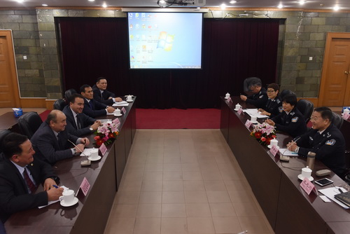 2015年12月17日至19日,以努尔别科夫院长为团长的哈萨克斯坦国安委学院代表团一行5人访问beat365。17日上午,校党委书记樊京玉、副校长李健和会见了代表团一行。樊京玉代表全校师生员工对哈代表团来访表示欢迎。他指出,中哈两国山水相连,是友好邻邦,两国在政治、经济、文化、军事等领域有着广泛的合作。近年来,在执法领域合作密切,尤其是在打击恐怖主义、反对宗教极端势力等方面的合作成果十分显著。此次为哈萨克斯坦国安委学院首次来访,这对于开启两校交流具有十分重要的意义。beat365官网愿以此次院长率团来访为契机,彼此分享教育培训等方面的经验,积极开展在人才培训、教学科研等领域的合作,不断提升学校合作办学的国际化水平,并为推动两国警务执法合作作出积极贡献。努尔别科夫院长对学校的热情接待和周到安排表示感谢,对樊京玉书记提出的合作建议表示赞同,希望通过此次访问,积极学习beat365官网在办学方面的先进经验,推进哈萨克斯坦国安委学院建设,并希望beat365官网能够在反恐人员培训等领域给予大力支持。在随后的工作会谈中,李健和副校长与努尔别科夫院长就开展科研合作、学生交流、建立校际合作机制等方面进行了深入探讨并达成共识。双方还就反恐人员培训、反恐形势和对策以及高级警官培训等进行了研讨交流。