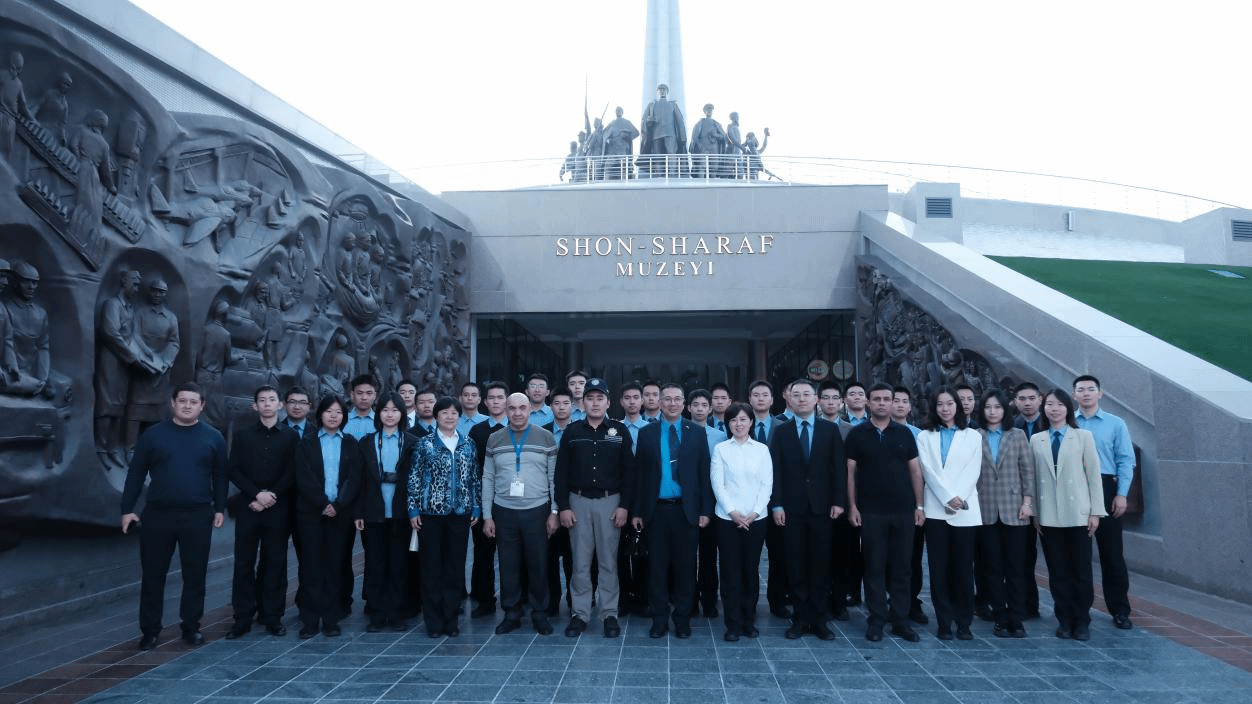 下午,我们开启了实践学习,先是走进了乌兹别克斯坦内务部的公共安全协调和监测中心,这里是国家安全管理的神经中枢,通过高精尖的监控网络与分析系统,实现对全国公共安全的实时监控与高效调度,让我们直观感受到了现代科技在维护国家安全稳定中的不可或缺性。午后至日落时分,我们的足迹延伸至具有深刻历史意义的地点。“胜利花园”纪念馆,作为纪念乌兹别克斯坦在伟大卫国战争中英勇牺牲烈士的神圣之地,馆内的每一尊雕像、每一面纪念碑都静默地诉说着那段悲壮的历史,它们不仅是国家对过往英雄的深切缅怀,更是对那段峥嵘岁月中坚韧不拔民族精神的崇高致敬。最后,夜幕低垂,我们踏入了“肖恩·沙拉夫”国家博物馆,这座璀璨的文化宝库收藏着丰富的历史文物与艺术珍品,从古老的丝绸之路遗迹到当代的艺术创作,无一不彰显着乌兹别克斯坦深厚的历史底蕴与多元文化的璀璨交融,让每一位到访者都能深刻感受到这片土地上流淌着的荣耀与梦想。