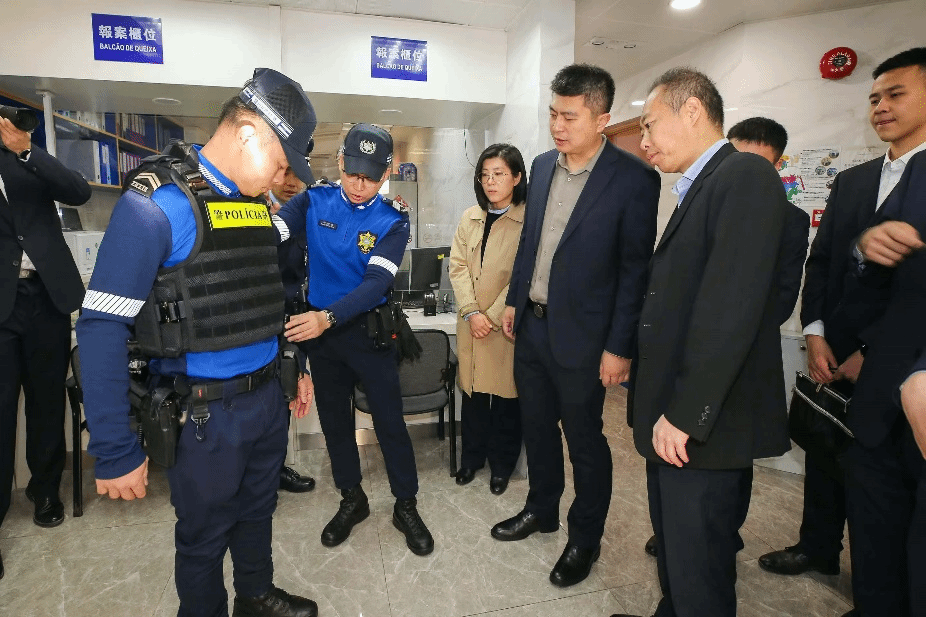 17日上午,代表团一行参观澳门治安警察局旅游服务中心和移动警务车。作为澳门应对旅客紧急情况、维护景区安全稳定的关键枢纽,澳门旅游警察服务中心具备先进的应急指挥体系和高效的协同运作机制。参访团成员通过实地观摩、听取讲解、提问交流,全面了解其如何借助科技设施、预警系统等技术手段,实现对旅客突发事件的快速响应和精准处置,为我们在应急管理教学与研究方面提供了宝贵借鉴。