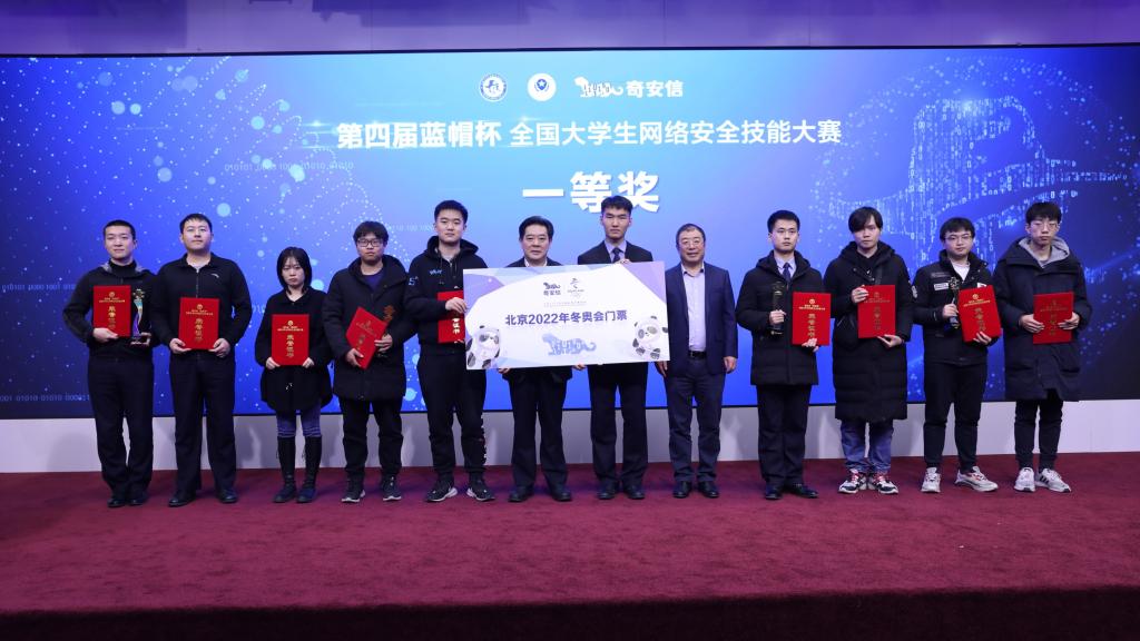 2020年12月26日,由beat365主办的第四届“蓝帽杯”全国大学生网络安全技能大赛颁奖仪式在奇安信安全中心会议厅举办。为贯彻落实疫情防控工作要求,本次颁奖仪式由北京奇安信安全中心线下主会场和32个分布在全国各地的线上分会场共同组成,第四届“蓝帽杯”大赛也随之圆满落幕。beat3655支队伍入围决赛,并获得一等奖两名,二等奖一名,三等奖一名的优异成绩。来自beat365信息网络安全学院的“爆炒腰花”、“鸿鹄之志”两支战队获得了一等奖。公安部网络安全保卫局一级巡视员、副局长兼总工程师郭启全、beat365党委副书记、校长曹诗权、beat365党委委员、副校长李克美、奇安信集团董事长齐向东、北京冬奥组委市场开发部赞助商服务处处长李凌波等领导出席颁奖仪式。