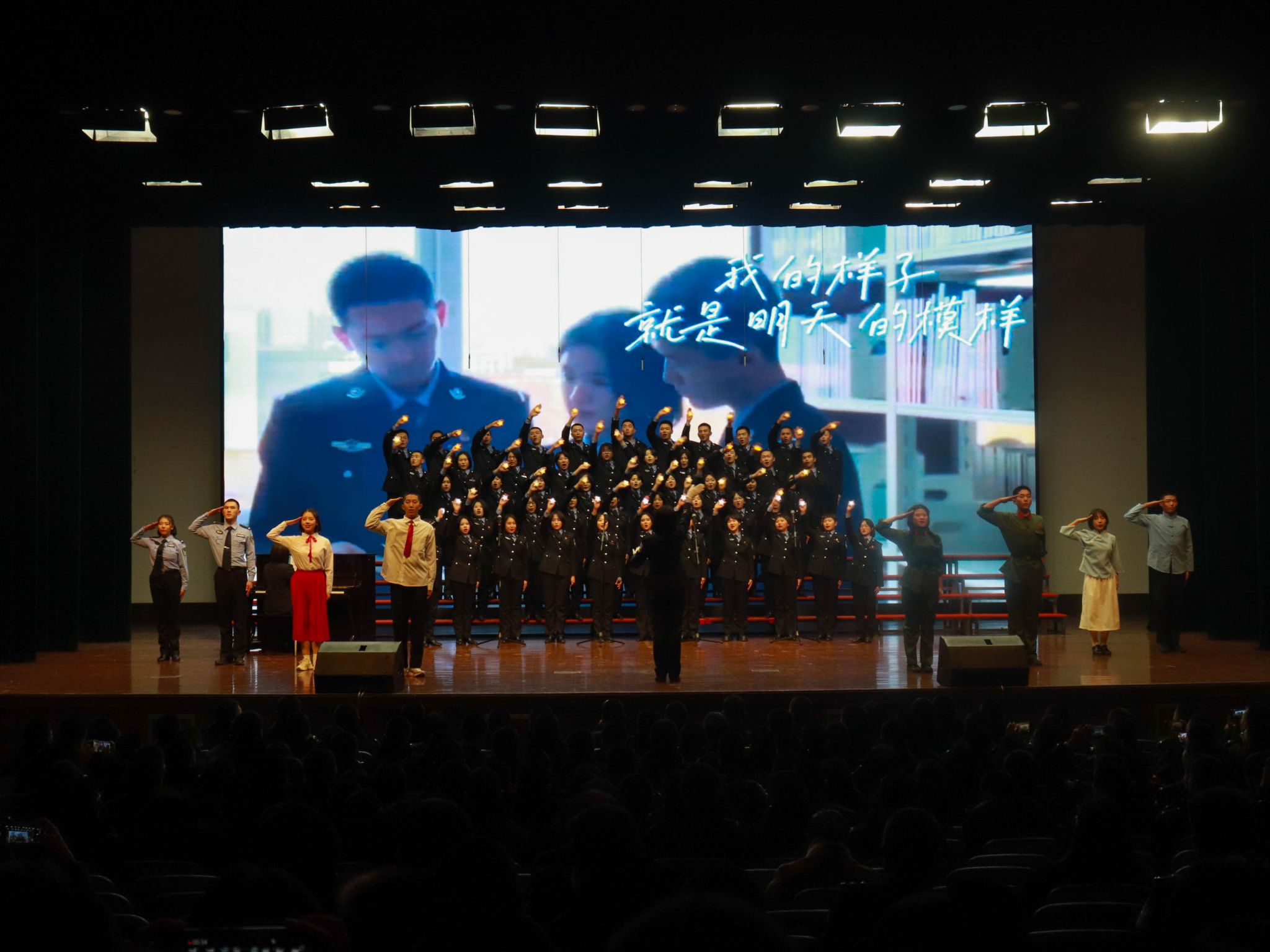 比赛中,每支队伍铿锵有力的警歌唱响整个礼堂,自选歌曲各显风采,有《不忘初心》《我和我的祖国》等合唱经典歌曲,也有《如愿》《有我》等流传度广、催人奋进并展现新时代青年奋发向上的歌曲。每支队伍整齐划一的动作、别出心裁的伴舞和道具、丰富的乐器伴奏,赢得观众们阵阵热烈的掌声。最后,比赛评委曾乙老师倾情演唱,将现场气氛推向高潮。