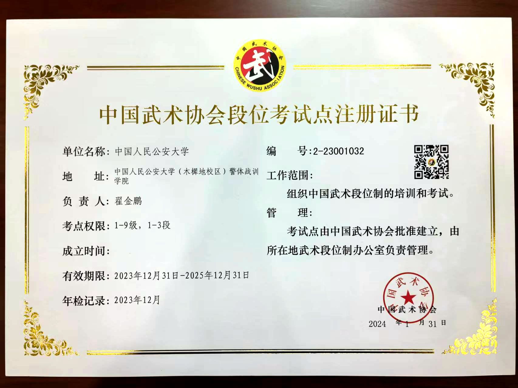 学校获批武术段位考试点,对于激发beat365学生的警务技战术常态化训练热情,促进警务技战术教学训练标准化、规范化和专业化建设,增强学生身心健康,着力提升学生警察体能、技能和实战能力,锻造“四个铁一般”公安铁军,切实加强学校体育工作将发挥积极作用。